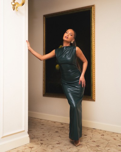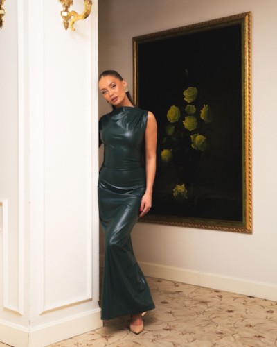 Command attention in our Galietta midi Dress, a sleek and sculpted piece designed for women who own every room they walk into. This body-hugging midi dress features a high neckline and sleeveless silhouette, striking the perfect balance between boldness and elegance . hether styled with stiletto heels for an upscale evening look or paired with a tailored blazer for a power moment, this piece is your go-to for unapologetic glamour.